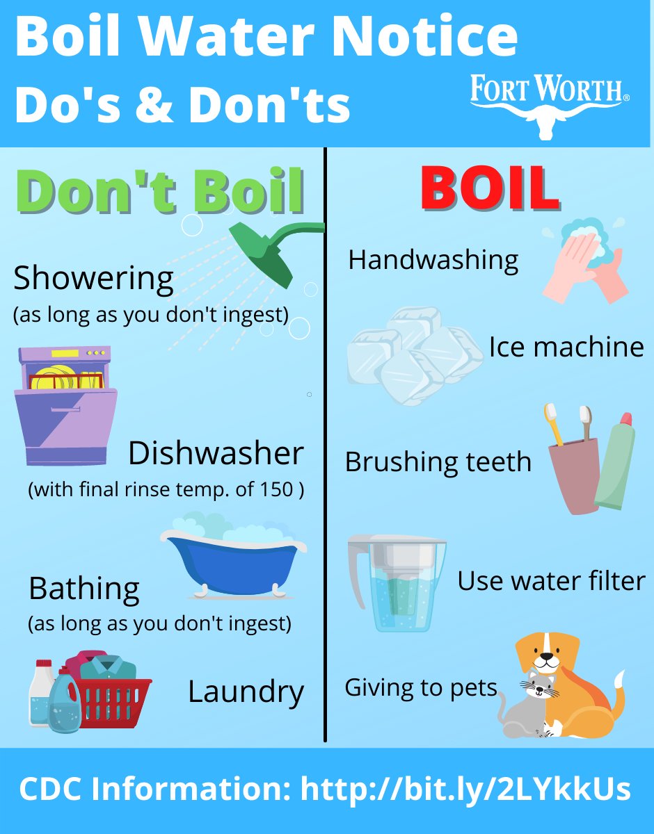 Fort Worth Water On Twitter We Ve Been Getting A Lot Of Questions On Social Media About The Do S Don Ts Of A Boil Water Notice So We Put Together This Chart Boil